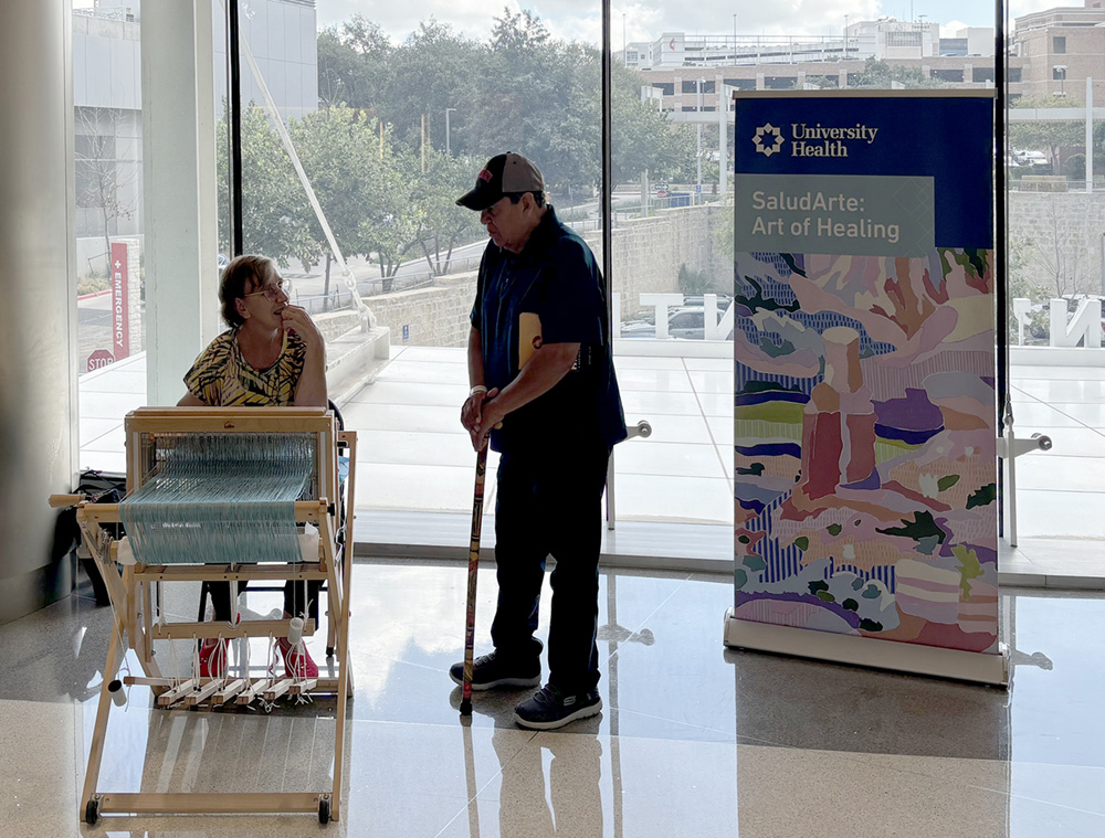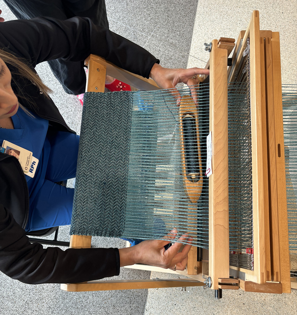 Each day, I moved my small loom to different locations, bringing the weaving process to a wider audience. Patients, visitors, and staff alike were curious about the loom, and many stopped to take pictures as they watched the weaving unfold.