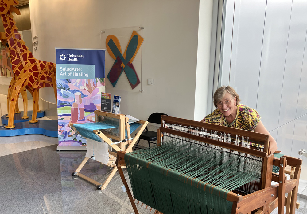 Each day, I moved my small loom to different locations, bringing the weaving process to a wider audience. Patients, visitors, and staff alike were curious about the loom, and many stopped to take pictures as they watched the weaving unfold.