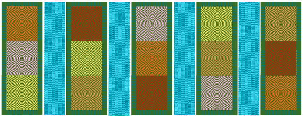 For the flowers, I chose the prominent overshot weaving pattern The Blooming Leaf of Mexico. This centuries-old design, passed down across cultures from Persia to Northern Europe, Spain, Mexico, and beyond, carries a sense of familiarity and tradition.